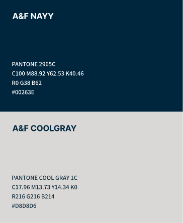 A&F NAVY symbolizes the stability of architecture and the trust built through years of projects. It reminds us of A&F's high quality, serious attitude towards architecture, and commitment to providing superior service and products. This color embodies the belief in creating completed architectural works with perfection.